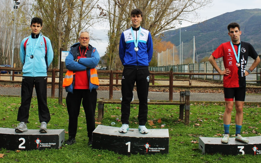 O pasado sábado día 3 de xaneiro tomamos parte con 17 dos nosos atletas no circuito de O Aguillón na localidade de A Rúa, con motivo da celebración do campionato Xunta de Galicia de Campo a Través individual e por clubs para as categorías absoluta, sub 23, sub 20, sub 18 e sub 16 que xuntou preto de medio milleiro de atletas e algo máis de 70 clubs. No que aos nosos se refire callaron unha máis que destacada actuación no individual e tamén no colectivo. Na categoría sub 16 subimos ao 2º caixón do podio para colgarnos a medalla de prata por clubs con Adrián Fuentefría 7º clasificado, Iago Bello 16º, Alejandro Casal 18º e Hugo Tuñas 26º, acadando tamén a nosa clasificación directa para o Campionato de España da modalidade. O equipo sub 20 rematou tamén nunha moi boa 4ª praza con Iago Prada 14º, Roque González 15º, Hugo Souto 18º e Lucas Prada 24º. Na categoría sub 23 Nuno Moure acadou a medalla de bronce da súa categoría o que lle da acceso á Selección Galega para o Nacional de Autonomías. Os resultados deste Campionato Galego de Campo A Través podedes consultalos no apartado de descargas atletismo desta mesma web.