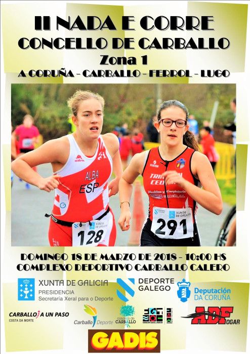 En la mañana de hoy se publicaba la inscripción definitiva del II Nada Corre Concello de Carballo, segundo de los clasificatorios de esta modalidad del triatlón que promueven conjuntamente la propia Federación Gallega de Triatlón, la AD.Fogar, el Concello de Carballo, Carballo Deporte y Gadis. El evento contará también con la inestimable colaboración de la Policía Local, el cuerpo de Protección Civil de Carballo y el grupo de voluntarios. La prueba tendrá lugar en la Piscina Municipal y las inmediaciones del Complexo Deportivo Carballo Calero el domingo día 18 de marzo desde las 9 de la mañana. Los 220 deportistas de 7 a 17 años pertenecen a 11 clubs de las localidades de A Coruña, Arteixo, Carballo, Cedeira, Ferrol, Lugo, Narón, Oleiros, Sada y Villalba. Los de la ADFogar de Carballo y Oleiros tomaremos parte con 36 triatletas de nuestras escuelas de base, de los que 6 pertenecen a la categoría femenina y los 30 restantes a la masculina. La entrega de medallas con la que se cerrará la jornada está prevista hacia las 2 de la tarde. La normativa de la prueba podéis consultarla en el aparatdo de descargas escuela de esta misma web y además como archivos adjuntos a esta noticia, os podéis informar acerca de la inscripción de nuestros jóvenes triatletas y la lista de salidas de las pruebas de natación.