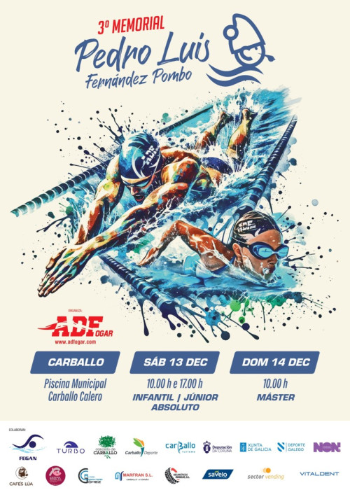 @s que formamos parte da Agrupación Deportiva Fogar voltamos a render homenaxe a Pedro Luis Fernández Pombo, o que fora directivo fundador na primeira xunta directiva constituída alá polo mes de outubro de 1988, e socio honorífico da entidade desde o ano 2014. Máis recentemente Pedro practicaba a natación como socio do clube e encargábase da coordinación dos xuices de natación en Carballo como membro do comité galego de árbitros da FEGAN. Nesta terceira edición o trofeo de natación e natación máster que leva o seu nome disputaráse os días 13 e 14 de decembro de 2025 na piscina municipal Carballo Calero de Carballo. O período de inscrición ao trofeo permanecerá aberto ata as 23:59 horas do domingo día 30 de novembro na plataforma FEDERATIO. A lista provisional de participantes publicaráse o luns 1 de decembro e a partir desa data abriráse un período de recepción de baixas ata o domingo 7 de decembro. Mentres podédes consultar a normativa do memorial nos arquivos adxuntos a esta mesma nova.