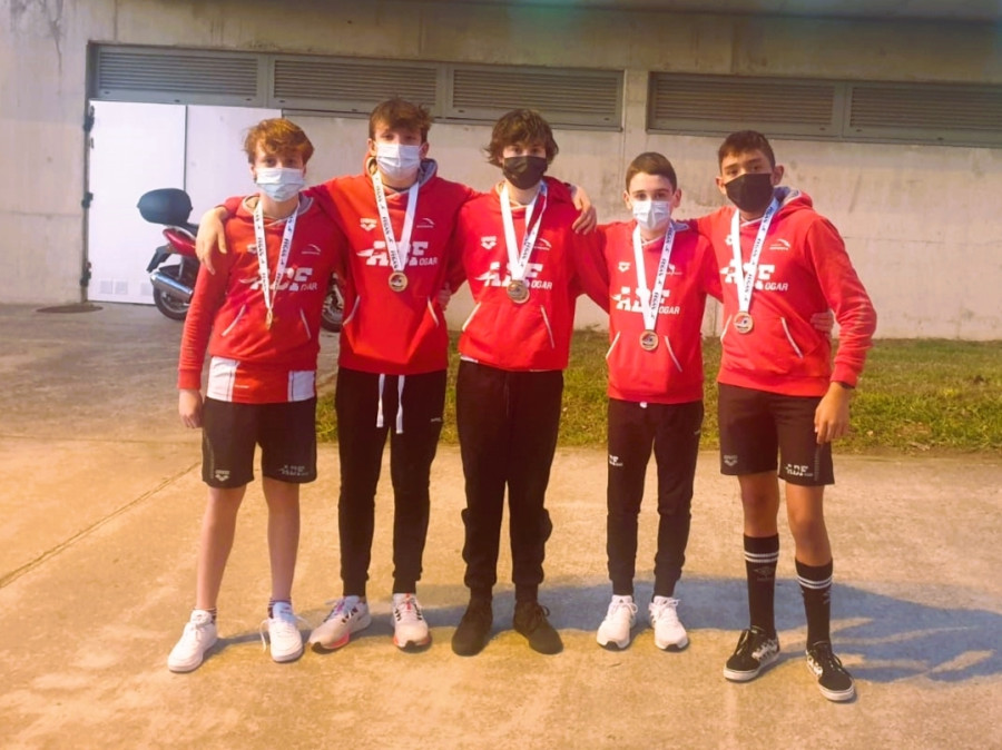 Os pasados 5 e 6 de febreiro de 2022 sete nadadores-as da AD.Fogar de Carballo e Oleiros tomaban parte no Campionato Galego Alevín de Natación de Inverno disputado na Piscina do Complexo Deportivo Rías do Sur, en Pontevedra. Lugar onde @s nos@s nadadoras e nadadores callaban unha moi boa actuación acadando a 5ª praza masculina, a 15ª feminina e a 6ª conxunta por equipos. As 6 medallas do campionato foron desta volta para Anxo Fuentefría na categoría dos 13 anos co ouro nos 100 braza e o bronce nos 200 libres; Oscar Alberte na categoría de 14 anos cos bronces nos 100 libres e os 100 bolboreta; e os dous ouros das substitucións masculinas dos 4x200 e os 4x100 libres. Ademáis nesta última os nosos remudistas Ian Parga, Paulo Rivas, Oscar Alberte e Joel Barcia establecían unha nova marca alevín do clube cun rexistro de 4'07''16. Así mesmo compre destacar tamén a actuación de Joel Barcia de 14 anos que foi 5º nos 200 costas e 6º nos 100 costas e o debut nun campionato galego das nosas féminas Lucía Fernández e Noa Ferreiro. Resultados que podedes atopar no apartado de descargas natación desta mesma web.