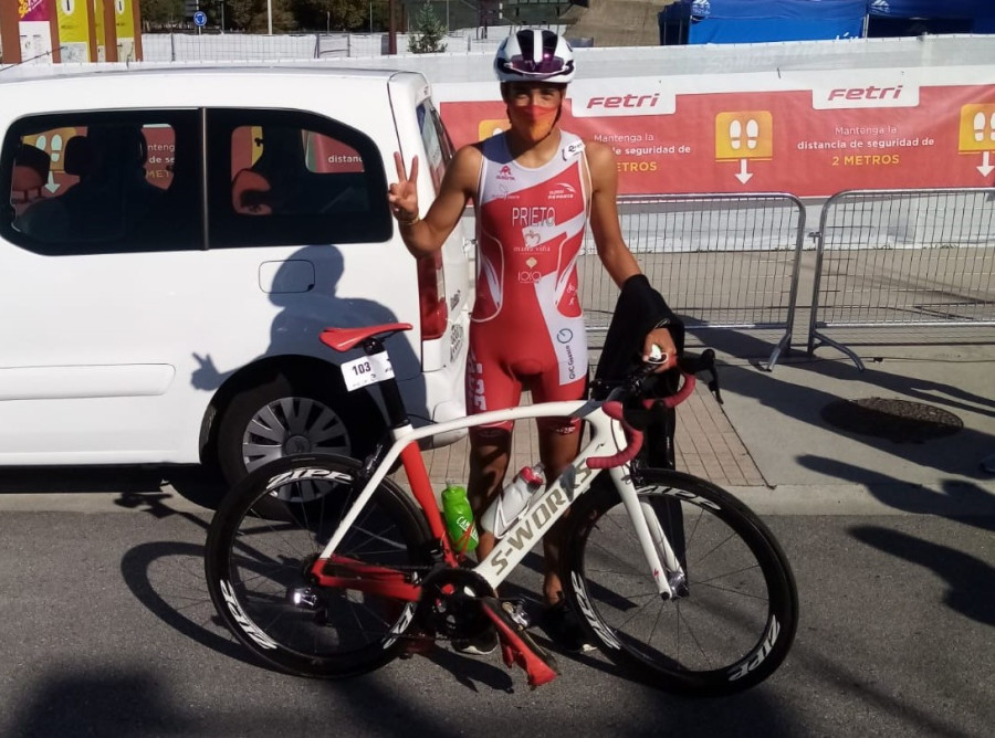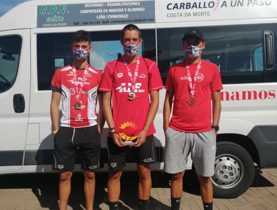 O pasado sábado día 22 de agosto a Federación Española de Tríatlon retomaba o seu calendario de competicións coa desputa do Campionato de España de Tríatlon Sprint na cidade de Pontevedra; no mesmo tomaban parte 8 dos nosos triatletas, 7 da categoría cadete e 1 da sub23, que baixo estritas medidas de seguridade callaban unha actuación máis que destacada. Pola mañá na categoría cadete masculina, Andrés Prieto proclamábase Subcampión de España a título individual a tan só 8 segundos do gañador da proba, Miguel Guzmán do C.T. Huracán Valencia; David Sancho remataba 40º e Álvaro Elizalde 45º, sumando entre os tres 1 hora 55 minutos e 20 segundos para facerse co bronce por equipos da categoría. En canto ás féminas as nosas cadetes Alba Otero e Marta González eran 60ª e 75ª respectivamente. Xa pola tarde Alberto Tomé do grupo de idade de 20 a 24 anos ocupaba a 18ª praza. Podedes atopar os resultados na seguinte ligazón https://triatlon.org/evento-seleccion-clasificacion/?alias=2020-cto-esp-triatlon-sprint-pontevedra