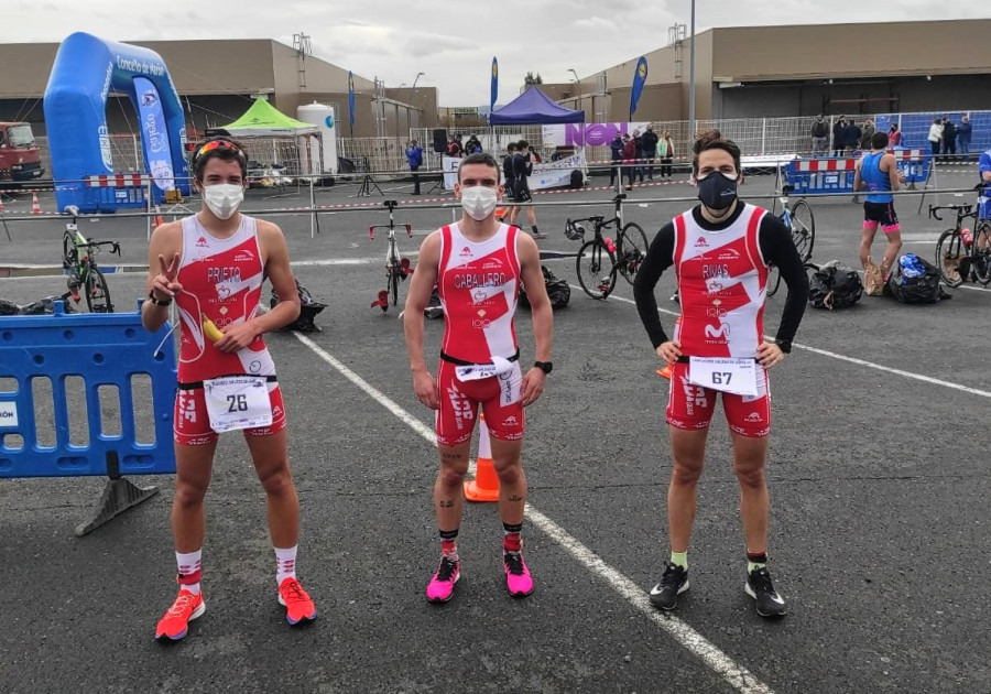 A pasada fin de semana Andrés Prieto (cadete), Pablo Caballero (sub 23) e Carlos Rivas (absoluto) representábannos no Campionato Galego de Dúatlon de Estrada disputado no Polígono Río do Pozo da localidade de Narón callando unha máis que destacada actuación rematando como 11º clasificados por equipos. No concurso individual Andrés Prieto de 17 anos remaba a proba na segunda praza en 57'58'' a 1'16'' do vencedeor, para proclamarse subcampión galego absoluto sobre a modalidade sprint e as distancias de 5 quilómetros de carreira a pé cun tempo de 15'24'', 19,2 quilómetros de ciclismo en 34'46'' e outros 2,5 quilómetros de carreira a pé en 7'49''. Pablo Caballero foi 51º en 1h 05'21'' e Carlos Rivas 59º en 1h 06'37''. Os resultados deste Campionato Galego de Dúatlon de Estrada podense consultar no apartado descargas tríatlon desta mesma web.