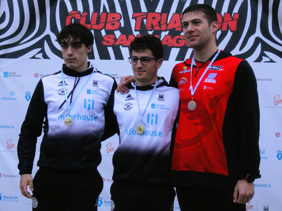 O pasado sábado celebrouse nas inmediacións do Estadio Verónica Boquete o XXI Dúatlon de Santiago nos formatos Escolar, Super Sprint e Sprint nos que os da AD.Fogar de Carballo e Oleiros estivemos representados por 35 d@s nos@s triatletas. As 3 carreiras de Santiago desenvolvéronse ben para os nosos intereses, deste xeiro na proba escolar @s máis destacad@s foron, Diego Souto como 5º infantil, Martina Santomé que foi 7ª alevín e Wenceslao Oubiña que rematou 11º benxamín. Na proba sobre a distancia super sprint Adrián Sancho acadou o bronce na categoría xuvenil, mesma categoría na que Anxo Bello foi 5º, mentres que Lino Souto rematou na 14ª praza cadete e fomos 5º conxunt@s por clubs. Na proba sobre a distancia sprint fomos 6º masculinos por clubs e os mellores foron desta volta, Rubén Otero que acadou o bronce na categoría júnior, Alberto Tomé que foi 12º absoluto e Alexandre Rodríguez que rematou 13º veterano 1. Os resultados destas probas podédelos atopar no apartado de descargas tríatlon e máis escola desta mesma web. As vindeiras citas para 12 d@s nos@s serán, o 23 e o 24 de marzo en Alcobendas, localidade onde se disputan os Campionatos de España de Dúatlon Super Sprint, Sprint e Substitucións Mixtas da Liga Talento; e o 24 de marzo en Quarteira onde se celebra unha das probas da Copa de Europa Júnior de Tríatlon.