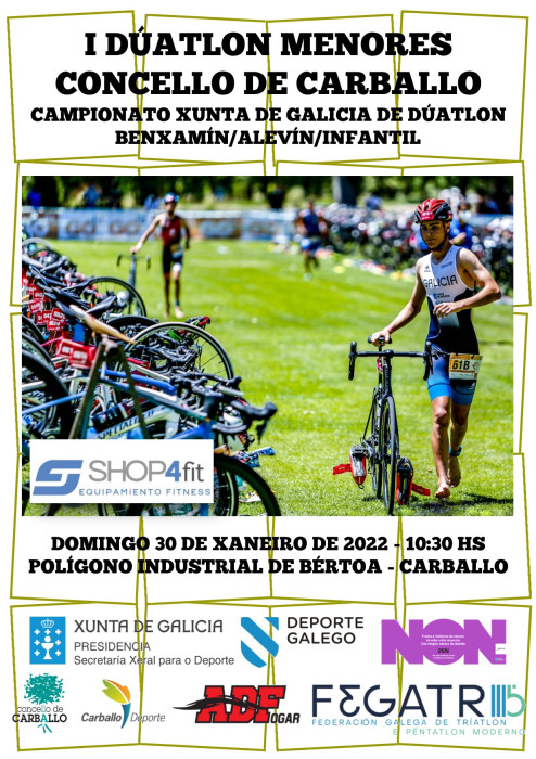 Logo das edicións escolares de 2018 e 2019, Carballo acollía o pasado domingo unha proba de Dúatlon de Menores, desta volta o Campionato Galego para deportistas con licenza federativa das categorías benxamín, alevín e infantil. A proba desenvolvéuse no circuíto habitual do Polígono de Bértoa nunha mañán soleada e coa presenza de público que puido disfrutar do bo facer destes case 300 futuros triatletas de 22 equipos achegados de toda Galicia. No referente ao concurso d@s nos@s, compre decir que d@s 27 inscritos finalmente so poideron participar 18, os 9 restantes causaron baixa pola covid. Aínda así na categoría benxamín Tadeo Suárez acaba a medalla de prata e Martina Santomé facíase coa de bronce. Outros resultados destacados foron o 4º posto do equipo benxamín masculino que puntuaba con Tadeo Suárez, Leo Mato e máis Ethan Rodríguez, o 12º posto da infantil Irene Santomé ou o 14º posto do tamén infantil Manuel López, que xunto con Mauro Rodríguez e Lino Souto remataban 7º por equipos infantís. Os resultados deste I Dúatlon de Menores Concello de Carballo están dispoñibles no apartado descargas tríatlon desta mesma web.