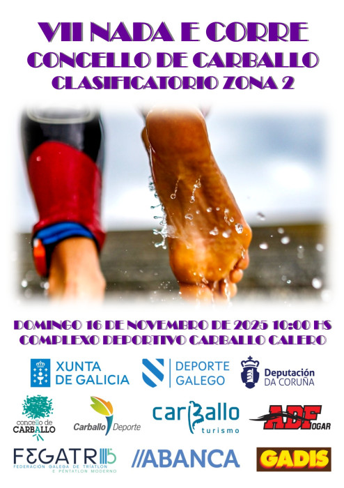 O VII Nada e Corre Concello de Carballo volta este domingo a nosa localidade grazas a organización conxunta da Fegatri o propio Concello de Carballo e Carballo Deporte, e por suposto á inestimable colaboración da Policía Local, o corpo de voluntarios de Protección Civil, Gadis e os 23 voluntarios que aportamos desde a AD.Fogar como clube organizador. A proba presentóuse no día hoxe no Casa do Concello da man do alcalde Daniel Pérez, o concelleiro de deportes, Daniel Barreiro e o presidente da ADFogar, Gustavo Álvarez. Desta volta a proba coincide coa fase clasificatoria da zona 2 (A Coruña, Arteixo, Betanzos, Costa da Morte e Sada) e terá lugar na Piscina Municipal (probas de natación) e a contorna do Complexo Deportivo Carballo Calero (probas de carreira) desde as 9 horas da mañá e ata aproximadamente as 14 horas do mediodía. Os 5 clubs participantes desprazarán ata Carballo a 52 deportistas de idades comprendidas entre os 6 e os 15 anos, d@s cales 20 pertencen á AD.Fogar de Carballo e Oleiros, ademáis tomarán parte 9 deportistas independentes. A entrega de premios co que se pechará a xornada está prevista cara ás 13:00 horas. Todo o referente a este VII Nada e Corre Concello de Carballo podédelo atopar na seguinte ligazón: https://fegatri.org/evento/vii-nada-e-corre-carballo-clasificatoria-2025-zona-2/