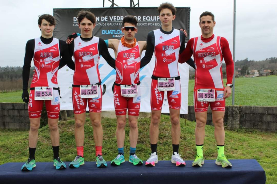 A pasada fin de semana 12 dos nosos competiron no Campionato Galego de Dúatlon CRE de Vedra, onde presentamos dous equipos absolutos masculinos, un na categoría elite e outro na open. A falta da publicación oficial dos resultados por parte da Fegatri compre sinalar que os da AD.Fogar de Carballo e Oleiros estivemos a moi bo nivel. Dito o cal na categoría elite fomos 6º clasificados de 27 equipos, con Adrián Sancho, Alberto Tomé, Hugo Souto, Iago Prada, Michel Núñez e Rubén Otero, que remataron a proba en 1h:03'19'' a tan só 50'' do podio; mentres que na categoría open e cun tempo final de 1h:05'54'', Alexandre Rodríguez, David Murado, Joel Barcia, Nuno Moure e Oscar Alberte remataron 4º dos 45 equipos participantes. Os resultados provisionais desta CRE están a dispor no apartado de descargas tríatlon desta mesma web.