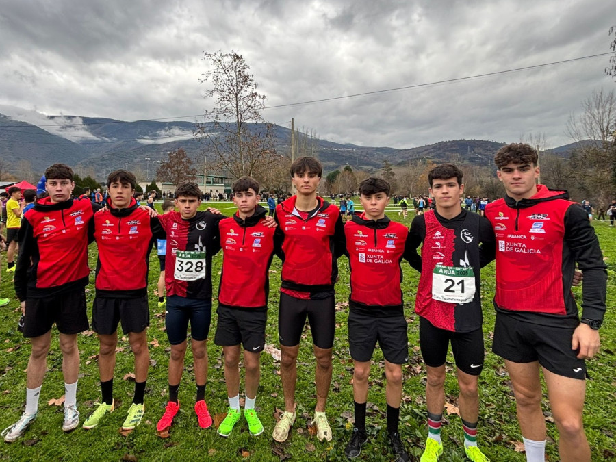 O pasado sábado día 3 de xaneiro tomamos parte con 17 dos nosos atletas no circuito de O Aguillón na localidade de A Rúa, con motivo da celebración do campionato Xunta de Galicia de Campo a Través individual e por clubs para as categorías absoluta, sub 23, sub 20, sub 18 e sub 16 que xuntou preto de medio milleiro de atletas e algo máis de 70 clubs. No que aos nosos se refire callaron unha máis que destacada actuación no individual e tamén no colectivo. Na categoría sub 16 subimos ao 2º caixón do podio para colgarnos a medalla de prata por clubs con Adrián Fuentefría 7º clasificado, Iago Bello 16º, Alejandro Casal 18º e Hugo Tuñas 26º, acadando tamén a nosa clasificación directa para o Campionato de España da modalidade. O equipo sub 20 rematou tamén nunha moi boa 4ª praza con Iago Prada 14º, Roque González 15º, Hugo Souto 18º e Lucas Prada 24º. Na categoría sub 23 Nuno Moure acadou a medalla de bronce da súa categoría o que lle da acceso á Selección Galega para o Nacional de Autonomías. Os resultados deste Campionato Galego de Campo A Través podedes consultalos no apartado de descargas atletismo desta mesma web.