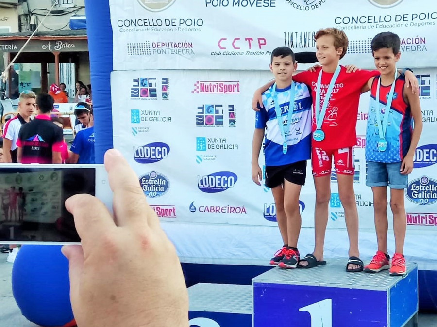 O pasado fin de semana disputábase na localidade pontevedresa de Combarro unha nova edición do Campionato Galego de Acuatlón en todas as súas categorías, proba na que tomaban parte seis dos triatletas da AD.Fogar de Carballo e Oleiros que callaban unha moi boa actuación tras facerse con tres medallas. As de Paulo Rivas e Manuel Souto como campións galegos das categorías benxamín e alevín respectivamente e a de Alberto Tomé como subcampión galego da categoría júnior. Ademais na categoría alevín Adrián Sancho era 8º, na infantil Sergio Soto terminaba 7º e na cadete David Sancho acadaba a 13ª praza. Os resultados dos nosos triatletas poden consultarse no aparatado de descargas tríatlon desta mesma web.